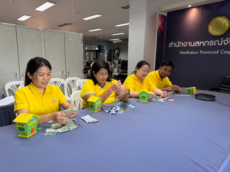 ร่วมกันทำกิจกรรมเปิดกระปุกออมสินและนับเงินจากกระปุกออมสิน กิจกรรม “สหกรณ์ออมดี มีสุข” โครงการ “สหกรณ์อาสาทำความดีด้วยหัวใจเฉลิมพระเกียรติพระบาทสมเด็จพระเจ้าอยู่หัว เนื่องในโอกาสพระราชพิธีมหามงคลเฉลิมพระชนมพรรษา 6 รอบ 28 กรกฎาคม 2567”