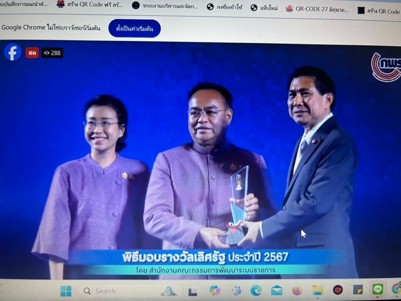 วันพุธที่ 18 กันยายน 2567 เวลา 09.00 น. นาสหกรณ์จังหวัดนนทบุรีมอบหมายให้ นางสาวศศลักษณ์ มณีนิล ผู้อำนวยการกลุ่มส่งเสริมและพัฒนาธุรกิจสหกรณ์ พร้อมด้วยบุคลากรสำนักงานสหกรณ์จังหวัดนนทบุรี เข้าร่วมรับฟังการถ่ายทอดงานเสวนาวิชาการและพิธีมอบรางวัลเลิศรัฐ ประจำปี 2567 และร่วมแสดงความยินดีกับ กรมส่งเสริมสหกรณ์ และจังหวัดนทบุรี ที่ได้รับรางวัลเลิศรัฐ ประจำปี 2567 โดยมี นายชูศักดิ์ ศิรินิล รัฐมนตรีสำนักนายกรัฐมนตรี เป็นประธานในพิธี ถ่ายทอดผ่าน Facebook Live และ Youtube channel ของสำนักงาน ก.พ.ร. (OPDC) จาก ห้องรอยัล จูบิลี่ บอลรูม อาคารชาเลนเจอร์