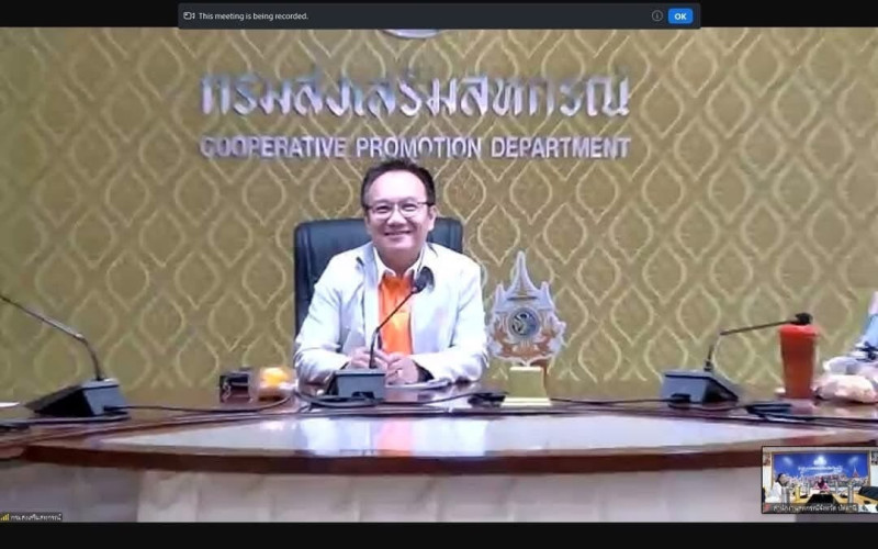 ถ่ายทอดสัญญาณจากห้องประชุมกองพัฒนาสหกรณ์ด้านการเงินและร้านค้า อาคาร 1 ชั้น 4 กรมส่งเสริมสหกรณ์โดยมีนายธนรัฐ โคจรานนท์ ผู้อำนวยการกองพัฒนาสหกรณ์ด้านการเงินและร้านค้า เป็นประธานการประชุม