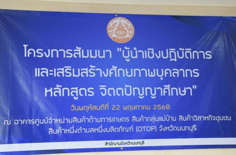 เข้าร่วมโครงการสัมมนา "ผู้นำเชิงปฏิบัติการและเสริมสร้างศักยภาพบุคลากร หลักสูตรจิตตปัญญาศึกษา" เพื่อเป็นการพัฒนาศักยภาพของทรัพยากรบุคคล ทั้งกระบวนความคิด จิตใจ การพูด เพื่อการพัฒนาตนงาน และชีวิต พัฒนาบุคลากรให้มีภาวะผู้นำ และสร้างบุคคลต้นแบบขององค์กรที่พึงประสงค์นำไปสู่การพัฒนาคุณภาพองค์กรและสังคมอย่างยั่งยืน โดยมี นายเกียรติศักดิ์ ตรงศิริ ผู้ว่าราชการจังหวัดนนทบุรี เป็นประธานเปิดโครงการ