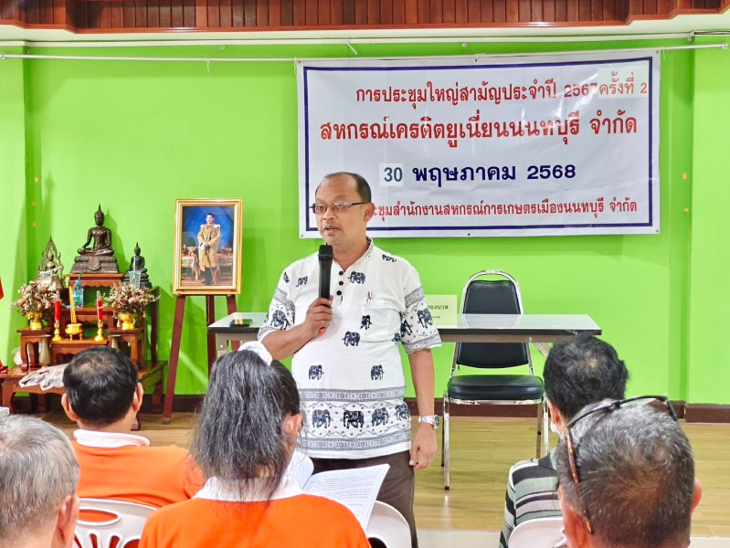 เข้าร่วมประชุมใหญ่สามัญประจำปี 2567 ครั้งที่ 2 ของสหกรณ์เครดิตยูเนี่ยนนนทบุรี จำกัด โดยมีวาระพิจารณาเป็นไปตามกฎหมายข้อบังคับของสหกรณ์ และได้แนะนำส่งเสริมสหกรณ์ เกี่ยวกับ การเลือกตั้งคณะกรรมการดำเนินการสหกรณ์, การเลือกตั้งผู้ตรวจสอบกิจการสหกรณ์, การพัฒนาความเข้มแข็งของสหกรณ์ และแผนการดำเนินงานของสหกรณ์ประจำปี 2568 รวมถึงแผนปรับปรุงการดำเนินงานของสหกรณ์