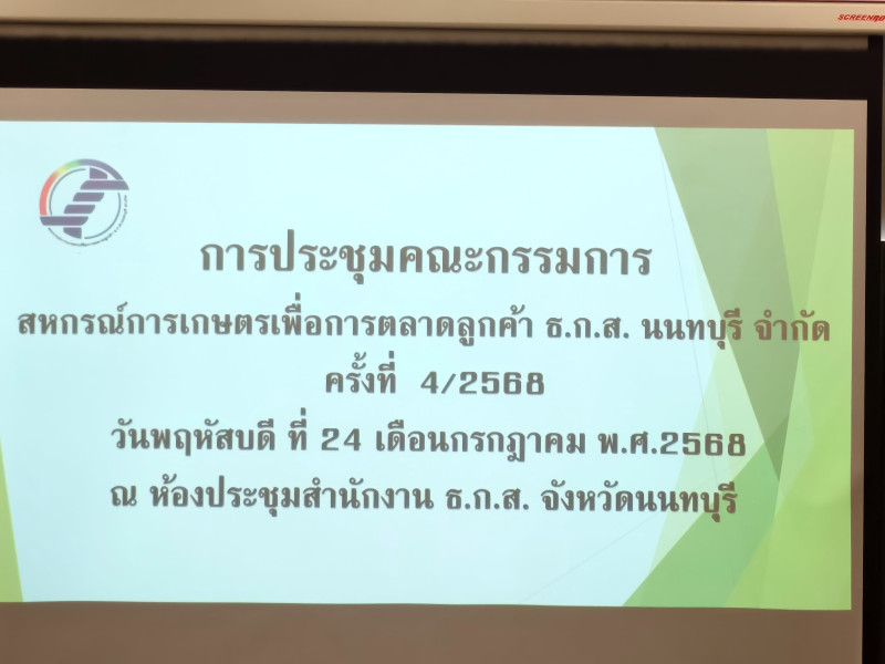 วันพฤหัสบดีที่ 24 กรกฎาค ม 2568 เวลา 13.30 น สหกรณ์จังหวัดนนทบุรี มอบหมายให้ นายศิริพจน์ ทองนวล ผู้อำนวยการกลุ่มส่งเสริมสหกรณ์ 1