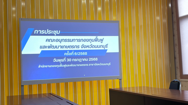 เข้าร่วมประชุมคณะอนุกรรมการกองทุนฟื้นฟูและพัฒนาเกษตรกรจังหวัดนนทบุรี ครั้งที่ 6/2568 เพื่อรับทราบผลการปฏิบัติงานตามโครงการติดตามการชำระเงินคืนจากเกษตรกร ปี 2568 และพิจารณากลั่นกรองแผนจัดการหนี้ของเกษตรกร และแผนโครงการฟื้นฟูและพัฒนาเกษตรกร ประเภทเงินอุดหนุน ประจำปี 2568