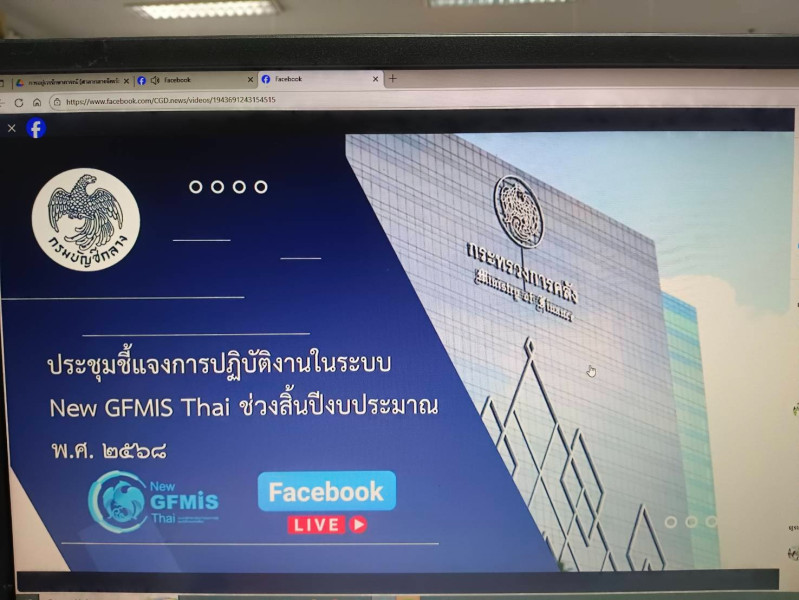 เข้าร่วมรับฟังการประชุมชี้แจงการปฏิบัติงานในระบบ New GFMIS Thai ช่วงสิ้นปีงประมาณ พ.ศ. 2568 จากกรมบัญชีกลาง ผ่าน Facebook Live : กรมบัญชีกลาง