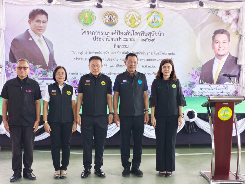 เข้าร่วม ในพิธีเปิดโครงการเร่งรัดผ่าตัดทำหมันสุนัข และแมวเพื่อควบคุมป้องกันโรคพิษสุนัขบ้าในพื้นที่เสี่ยงจังหวัดนนทบุรี ภายใต้โครงการสัตว์ปลอดโรค คนปลอดภัยจากโรคพิษสุนัขบ้า ตามพระปณิธานศาสตราจารย์ ดร. สมเด็จเจ้าฟ้าฯ กรมพระศรีสวางควัต วรขัติยราชนาวี ปีงบประมาณ พ.ศ. 2569 กิจกรรมประกอบด้วย นิทรรศการการดำเนินงานของหน่วยงาน และภาคีเครือข่าย การบริการผ่าตัดทำหมัน ฉีดวัคซีนป้องกันโรคพิษสุนัขบ้า รักษาพยาบาลเบื้องต้นให้กับสุนัขและแมว ประชาสัมพันธ์ให้ความรู้เกี่ยวกับโรคพิษสุนัขบ้า กฎหมาย เกี่ยวข้องกับโรคพิษสุนัขบ้า และการเลี้ยงสัตว์อย่างถูกวิธีแก่เจ้าของสัตว์ กิจกรรมแจกอาหารสุนัขแมว กิจกรรมรณรงค์บริโภคไข่ไก่เพื่อสุขภาพ พร้อมแจกไข่ไก่และเมล็ดพันธุ์พืชให้กับประชาชนในพื้นที่ โดยมี นายอามินทร์ มะยูโซ๊ะ รัฐมนตรีช่วยว่าการกระทรวงเกษตรและสหกรณ์ เป็นประธานในพิธีเปิดโครงการฯ และนางระพีพรรณ แก้วเพียงเพ็ญ รองผู้ว่าราชการจังหวัดนนทบุรี กล่าวต้อนรับ