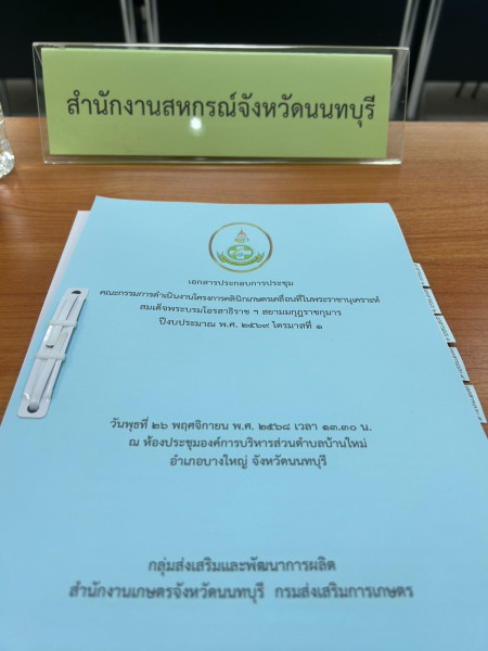 เข้าร่วมประชุมเพื่อเตรียมความพร้อมในการจัดงานโครงการคลินิกเกษตรเคลื่อนที่ในพระราชานุเคราะห์ สมเด็จพระบรมโอรสาธิราชฯ สยามมกุฎราชกุมาร ปีงบประมาณ พ.ศ. 2569 ไตรมาสที่ 1 โดยมี นางระวีพรรณ แก้วเพียงเพ็ญ รองผู้ว่าราชการจังหวัดนนทบุรี เป็นประธานการประชุม