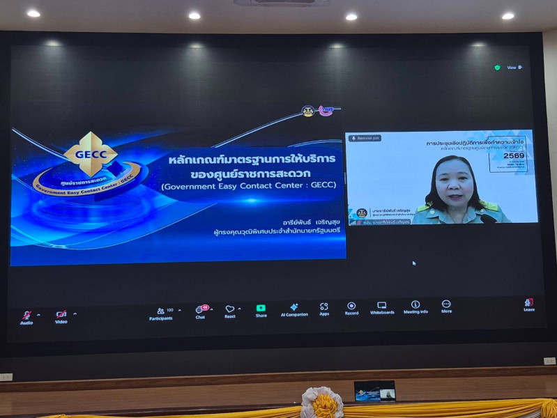 เข้าร่วมการประชุมเชิงปฏิบัติการเพื่อทำความเข้าใจหลักเกณฑ์มาตรฐานศูนย์ราชการสะดวก (GECC) ประจำปีงบประมาณ พ.ศ. 2569 ผ่านระบบการประชุมทางไกลด้วย Zoom Meeting โดยมีนางยุพา ทวีวัฒนะกิจบวร ปลัดสำนักนายกรัฐมนตรี เป็นประธานเปิดการประชุม ในการนี้ นายอภิชัย อร่ามศรี รองผู้ว่าราชการจังหวัดนนทบุรี พร้อมด้วยหัวหน้าส่วนราชการประจำจังหวัดนนทบุรี ได้เข้าร่วมการประชุมในครั้งนี้