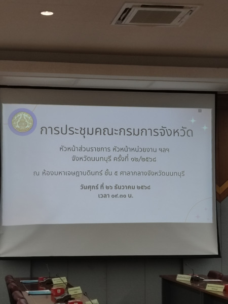 เข้าร่วมการประชุมคณะกรมการจังหวัด หัวหน้าส่วนราชการ หัวหน้าหน่วยงาน ฯลฯ จังหวัดนนทบุรี ครั้งที่ 12/2568 ประจำเดือนธันวาคม 2568 โดยมีนายเชษฐา โมสิกรัตน์ ผู้ว่าราชการจังหวัดนนทบุรี เป็นประธานในการประชุม