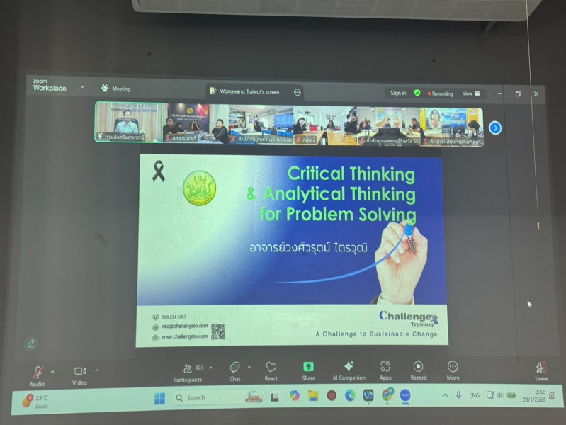 เข้าร่วมโครงการพัฒนาบุคลากรเพื่อยกระดับการบริการ ประจำปีงบประมาณ พ.ศ. 2569 กิจกรรม “การอบรมเชิงปฏิบัติการ หลักสูตร การพัฒนาทักษะการคิดเชิงวิพากษ์และการคิดเชิงวิเคราะห์เพื่อแก้ปัญหาที่ซับซ้อน (Critical Thinking) โดยมีนางสาวปรานอม จันทร์ใหม่ ผู้ทรงคุณวุฒิด้านการสหกรณ์เป็นประธานการเปิดโครงการ ผ่านระบบ Zoom Meetting