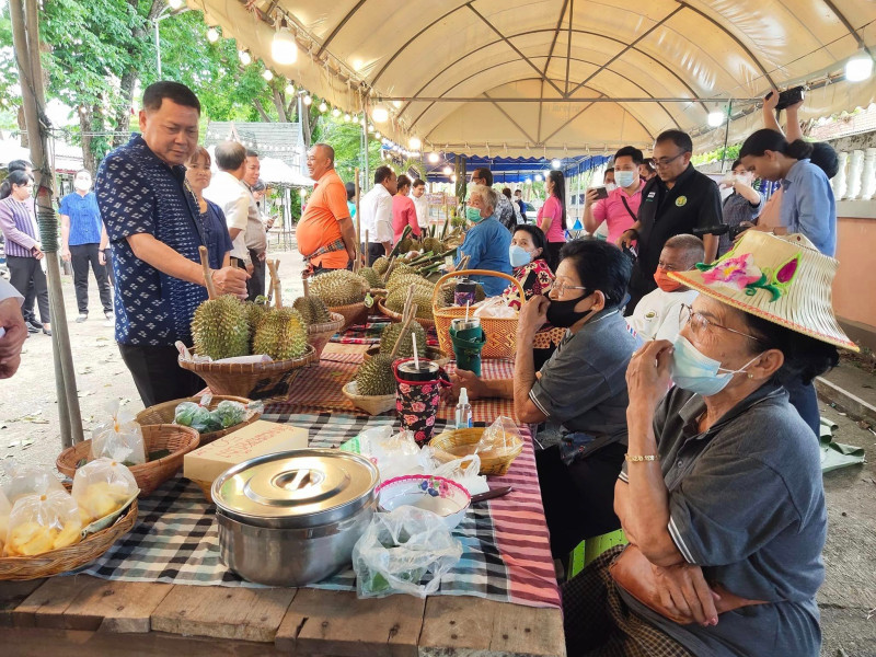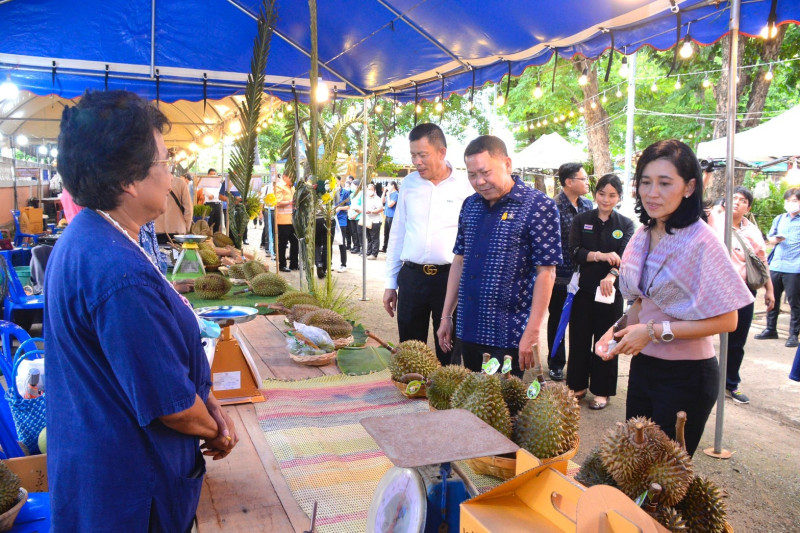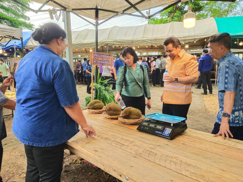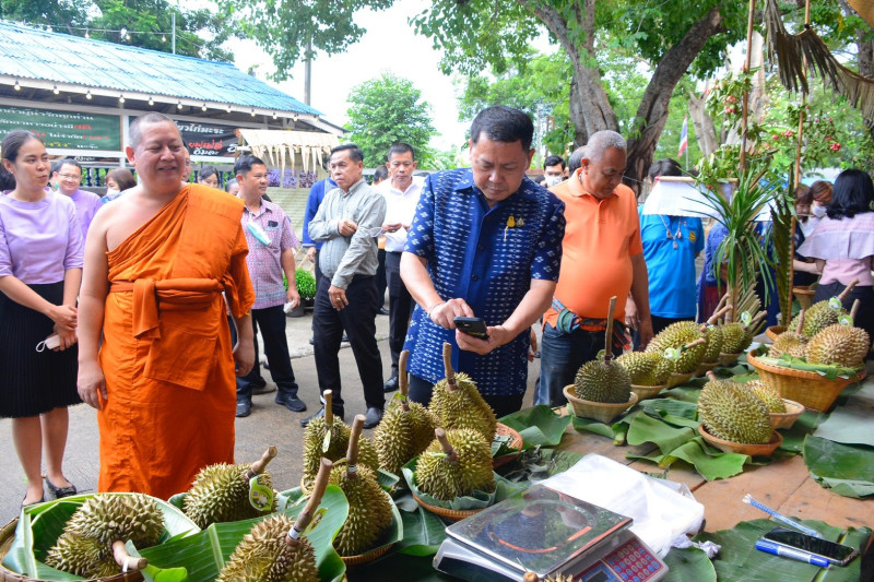 วันอังคารที่ 20 มิถุนายน 2566 เวลา 16.00 น. นายรุ่งโรจน์ สรวุฒิพิบูลย์ สหกรณ์จังหวัดนนทบุรี และหัวหน้าส่วนราชการในสังกัดกระทรวงเกษตรและสหกรณ์ ให้การต้อนรับนายประยูร อินสกุล ปลัดกระทรวงเกษตรและสหกรณ์ ในโอกาสลงพื้นที่ตรวจเยี่ยมสวนทุเรียนป้าต้อย-ลุงหมู ซึ่งเป็นสวนทุเรียนนนท์ GI จังหวัดนนทบุรี ที่ได้รับเครื่องหมายสิ่งบ่งชี้ทางภูมิศาสตร์ หรือ GI เป็นการการันตีคุณภาพผัก-ผลไม้ท้องถิ่นของไทยที่ได้รับการคุ้มครองให้เป็นสิทธิของชุมชน ผ่านการคุ้มครองทรัพย์สินทางปัญญา ช่วยเพิ่มมูลค่าและยกระดับแบรนด์ของสินค้าไปสู่เวทีนานาชาติ โดยท่านปลัดกระทรวงเกษตรและสหกรณ์ ได้หารือกับเกษตรกรถึงช่องทางการตลาดและการจำหน่ายผลผลิตทุเรียน โดยมี นางสาวอโรชา นันทมนตรี รองผู้ว่าราชการจังหวัดนนทบุรี ให้การต้อนรับ โอกาสนี้ ได้เดินทางไปเยี่ยมชมตลาดยามเย็น ถิ่นทุเรียนนนท์ คนไทรม้า ซึ่งจัดเป็นพื้นที่ขายทุเรียนนนท์ และผลผลิตทางการเกษตร ให้กับเกษตรกรในพื้นที่จังหวัดนนทบุรี ซึ่งงานดังกล่าวจัดขึ้นระหว่างวันที่ 17-25 มิถุนายน 2566 เวลา 15.00 – 20.00 น. ณ ลานวัดบางนา ต.ไทรม้า อ.เมืองนนทบุรี จ.นนทบุรีด้วย