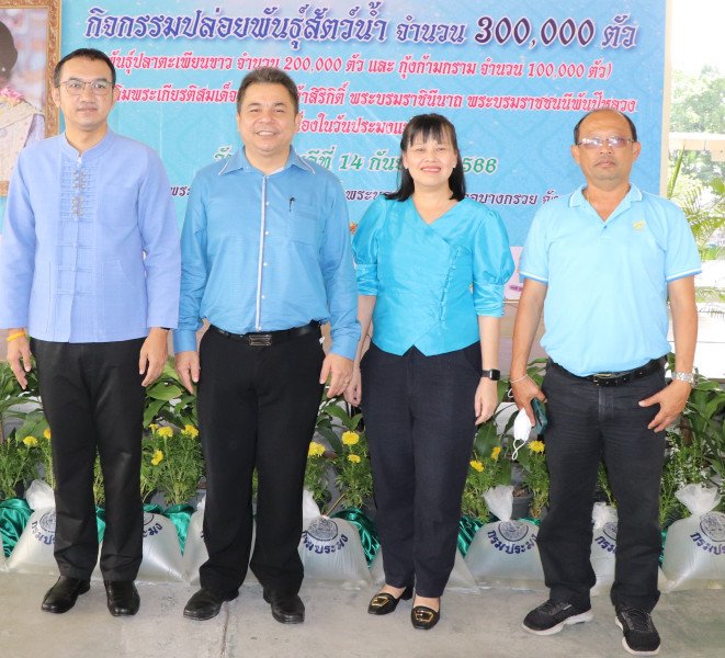 วันพฤหัสบดีที่ 14 กันยายน 2566 เวลา 09.30 น. นายรุ่งโรจน์ สรวุฒิพิบุลย์ สหกรณ์จังหวัดนนทบุรี และคณะ เข้าร่วมกิจกรรมปล่อยพันธุ์สัตว์น้ำ จำนวน 300,000 ตัว เพื่อเฉลิมพระเกียรติสมเด็จพระนางเจ้าสิริกิติ์ พระบรมราชินีนาถ พระบรมราชชนนีพันปีหลวง และเนื่องในวันประมงแห่งชาติ วันที่ 12 กันยายน ของทุกปี เพื่อรณรงค์ให้ประชาชนได้ตระหนักถึง ความสำคัญของทรัพยากรสัตว์น้ำ ตลอดจนมีส่วนร่วมในการอนุรักษ์ทรัพยากรสัตว์น้ำ ให้สามารถใช้ประโยชน์อย่างยั่งยืน โดยจัดให้ปล่อยพันธุ์สัตว์น้ำตามแหล่งน้ำสาธารณะ โดยกำหนดปล่อยพันธุ์ปลาตะเพียนขาว จำนวน 200,000 ตัว และกุ้งก้ามกราม จำนวน 100,000 ตัว โดยมี นายสุธี ทองแย้ม ผู้ว่าราชการจังหวัดนนทบุรี เป็นประธานในพิธีเปิด ณ ริมแม่น้ำเจ้าพระยา บริเวณหน้าโรงไฟฟ้าพระนครเหนือ อำเภอบางกรวย จังหวัดนนทบุรี