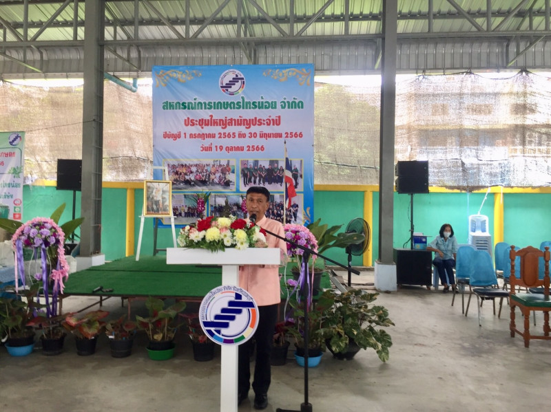 วันพฤหัสบดีที่ 19 ตุลาคม 2566 เวลา 09.30 น. สหกรณ์จังหวัดนนทบุรี มอบหมายให้ นางสาวศศลักษณ์ มณีนิล ผอ.กลุ่มส่งเสริมสหกรณ์ 2 และ นายฉัตรชัย เนตรสัมฤทธิ์ นักวิชาการสหกรณ์ปฏิบัติการ เข้าแนะนำ ส่งเสริม กำกับ ติดตาม และร่วมประชุมใหญ่สามัญประจำปี ของ สหกรณ์การเกษตรไทรน้อย จำกัด โดยมีวาระเพื่อพิจารณาแก้ไขเพิ่มเติมข้อบังคับของสหกรณ์ ณ สำนักงานสหกรณ์ฯ อำเภอไทรน้อย จังหวัดนนทบุรี