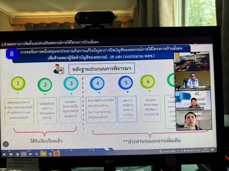 เข้าร่วมประชุมซักซ้อมแนวทางการจัดตั้งและส่งเสริมสหกรณ์ภายใต้โครงการบ้านมั่นคงและแนวทางการดำเนินโครงการพัฒนาศักยภาพสหกรณ์นอกภาคการเกษตรสู่ความเข้มแข็ง ประจำปีงบประมาณ พ.ศ. ๒๕๖๗ ผ่านระบบการประชุมออนไลน์ Zoom Meeting โดยถ่ายทอดสัญญาณจากกองพัฒนาสหกรณ์ด้านการเงินและร้านค้า กรมส่งเสริมสหกรณ์