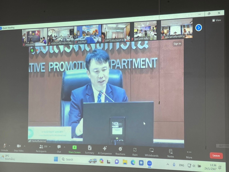 เข้าร่วมรับฟังชี้แจงแนวทางการดำเนินงานและติดตามประเมินผลความก้าวหน้าการขับเคลื่อนความเข้มแข็งสหกรณ์และกลุ่มเกษตรกร ประจำปีงบประมาณ พ.ศ.2567 เพื่อชี้แจง ทำความเข้าใจ และเตรียมความพร้อมในการปฏิบัติงาน ติดตามความก้าวหน้าและรายงานให้เป็นไปตามแนวทางที่กรมกำหนด ผ่านระบบ Zoom Meeting โดยมี นายนิรันดร์ มูลธิดา รองอธิบดีกรมส่งเสริมสหกรณ์ เป็นประธานการประชุมฯ