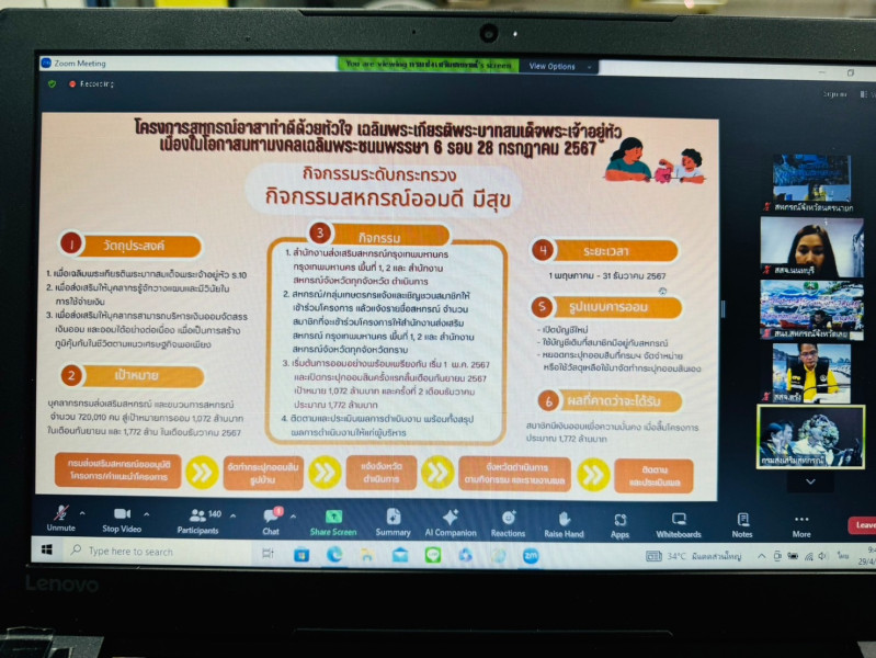 เข้าร่วมประชุมชี้แจง ซักซ้อมความเข้าใจแนวทางการขับเคลื่อนโครงการ สหกรณ์อาสาทำดีด้วยหัวใจ เฉลิมพระเกียรติพระบาทสมเด็จพระเจ้าอยู่หัว เนื่องในโอกาสมหามงคลเฉลิมพระชนมพรรษา 6 รอบ 28 กรกฎาคม 2567 ผ่านระบบ Zoom Meeting โดยมีนายนิรันดร์ มูลธิดา รองอธิบดีกรมส่งเสริมสหกรณ์ เป็นประธานการประชุม