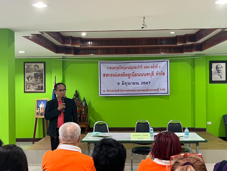 เข้าร่วมประชุมใหญ่สามัญประจำปี 2566 ครั้งที่ 2 ของสหกรณ์เครดิตยูเนี่ยนนนทบุรี จำกัด ดำเนินการเป็นไปตามมาตรา 58 แห่งพระราชบัญญัติสหกรณ์ พ.ศ.2542 ภายใน 14 วันนับแต่วันที่นัดประชุมใหญ่ครั้งแรก เมื่อสมาชิกมาครบองค์ประชุมแล้ว ประธานกรรมการดำเนินการสหกรณ์ฯ ได้เปิดประชุมและดำเนินการประชุมตามระเบียบวาระการประชุมใหญ่ ซึ่งมีวาระพิจารณาต่างๆ เป็นไปตามกฎหมาย และข้อบังคับสหกรณ์ฯ และแนะนำส่งเสริมสหกรณ์ในเรื่อง โครงการแก้ปัญหาหนี้สมาชิกสหกรณ์