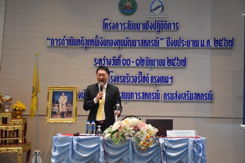 เข้าร่วมโครงการสัมมนาเชิงปฏิบัติการ "การดำเนินคดีลูกหนี้เงินกองทุนพัฒนาสหกรณ์" โดยมีนายวิศิษฐ์ ศรีสุวรรณ์ อธิบดีกรมส่งเสริมสหกรณ์ เป็นประธานในพิธีเปิดโครงการฯ