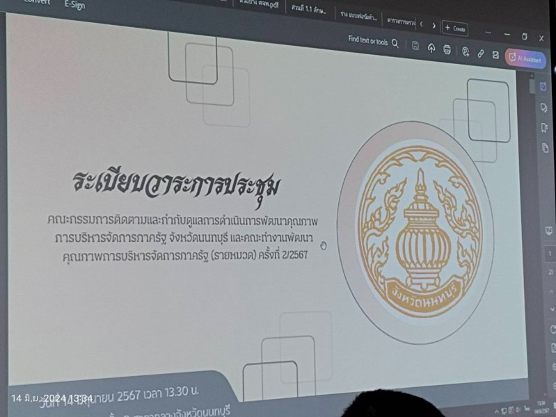 >> วันศุกร์ที่ 14 มิถุนายน 2567 เวลา 13.30 น. นายรุ่งโรจน์ สรวุฒิพิบูลย์ สหกรณ์จังหวัดนนทบุรี พร้อมด้วยนางสาวนริศา รอดไพ นักวิชาการสหกรณ์ชำนาญการ เข้าร่วมประชุมคณะกรรมการติดตามและกำกับดูแลการดำเนินการพัฒนาคุณภาพการบริหารจัดการภาครัฐจังหวัดนนทบุรี และคณะทำงานพัฒนาคุณภาพการบริหารจัดการภาครัฐ (รายหมวด) ครั้งที่ 2/2567 เพื่อพิจารณาดำเนินการกำหนดแนวทางและข้อมูลที่เกี่ยวข้องกับการเสนอผลงานฯ เพื่อประกอบการตรวจประเมินเพื่อยืนยันผลการประเมิน ณ สถานที่ปฏิบัติงาน (Site Visite) ของจังหวัดนนทบุรี ประจำปีงบประมาณ พ.ศ. 2567
