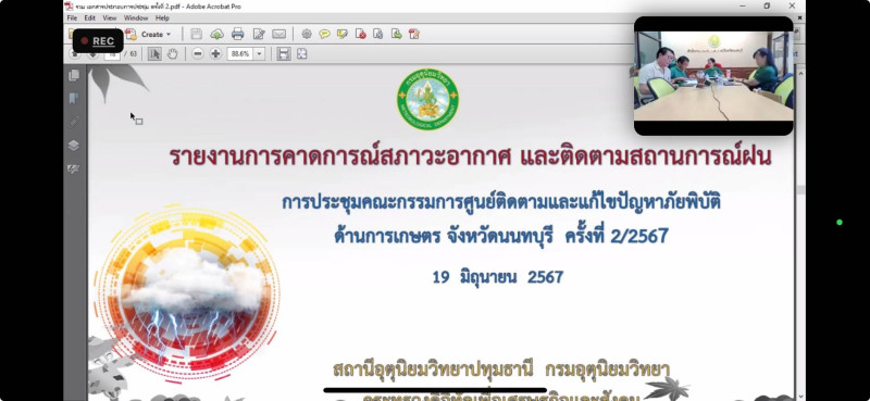 >>เข้าร่วมประชุมศูนย์ติดตามและแก้ไขปัญหาภัยพิบัติด้านการเกษตรจังหวัดนนทบุรี ครั้งที่ 2/2567 ผ่านระบบ ZOOM Meeting โดยมีนางสาวปาจรีย์ แน่นหนา เกษตรและสหกรณ์จังหวัดนนทบุรี เป็นประธานในการประชุม ถ่ายทอดสัญญาณจากห้องประชุมสำนักงานเกษตรและสหกรณ์จังหวัดนนทบุรี โดยมีวาระพิจารณาแผนการป้องกันและบรรเทาสาธารณภัยด้านการเกษตร ในช่วงฤดูฝน ปี ๒๕๖๗ จังหวัดนนทบุรี