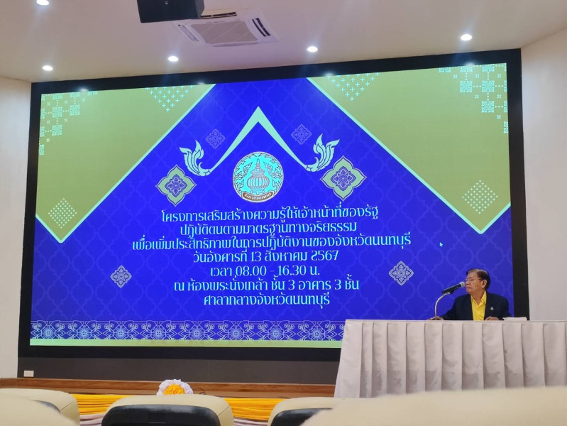 เข้าร่วมโครงการเสริมสร้างความรู้ให้เจ้าหน้าที่ของรัฐปฏิบัติตนตามมาตรฐานทางจริยธรรมเพื่อเพิ่มประสิทธิภาพในการปฏิบัติงานของจังหวัดนนทบุรี